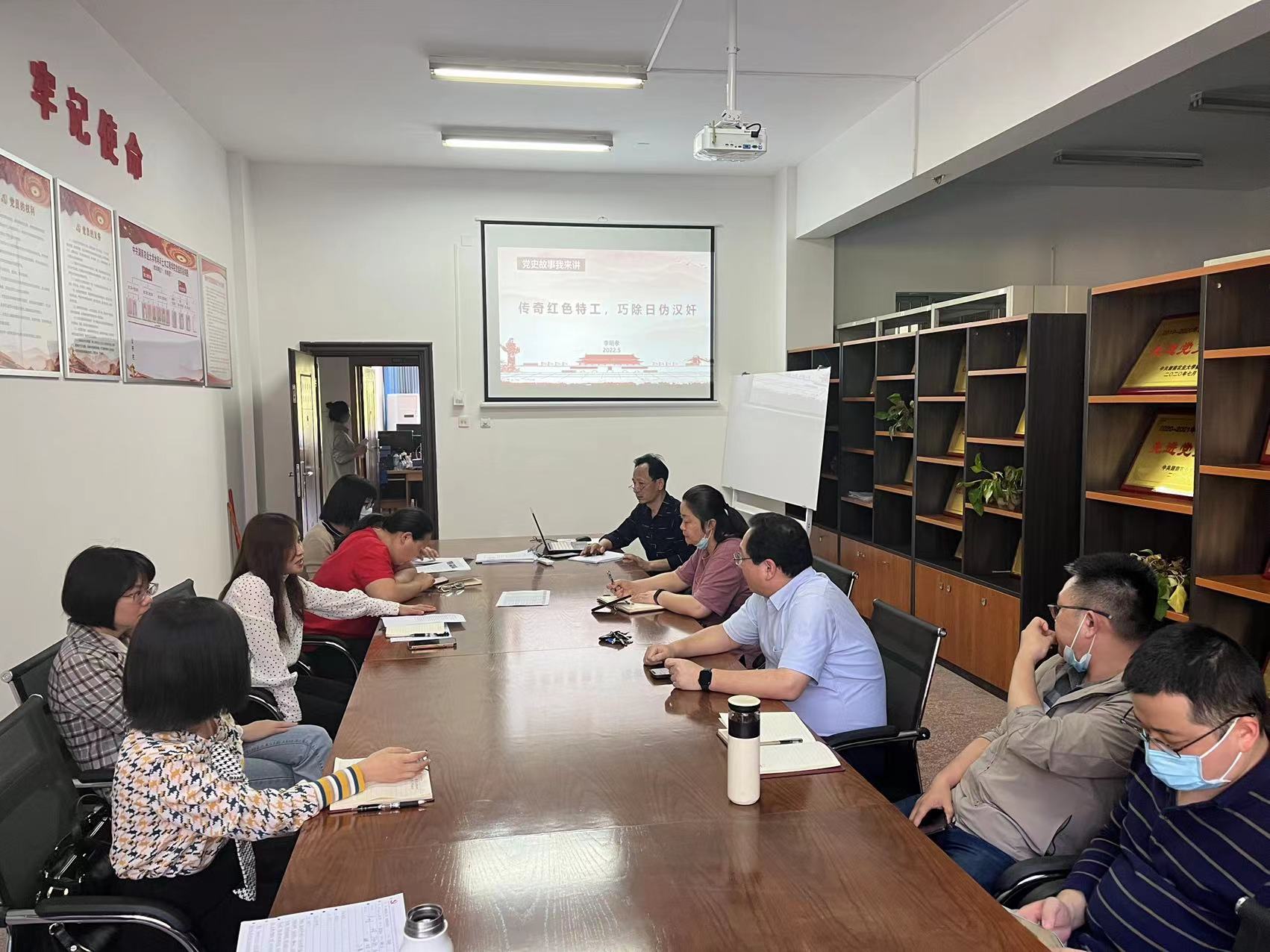 第二项议程是“党史故事我来讲”主题活动,李明孝老师讲述了“传奇红色特工,巧除日伪汉奸”的故事。故事讲述的是红色传奇特工——中共“冀东军区联络部”部长任远的英雄事迹,任远在受重伤被俘、求死不得的情况下,在狱中将计就计,利用敌人的弱点,最终借敌人之手,除掉了对我方危害极大的伪军汉奸和日本特务。故事让全体党员同志明白了“哪有什么岁月静好,只是有人替你负重前行,今日的幸福来之不易,不忘先烈,砥砺前行。”