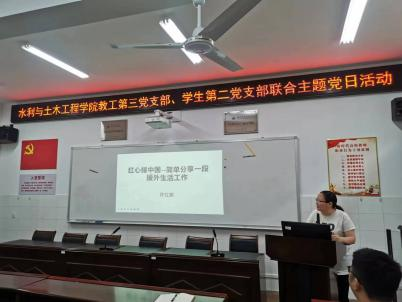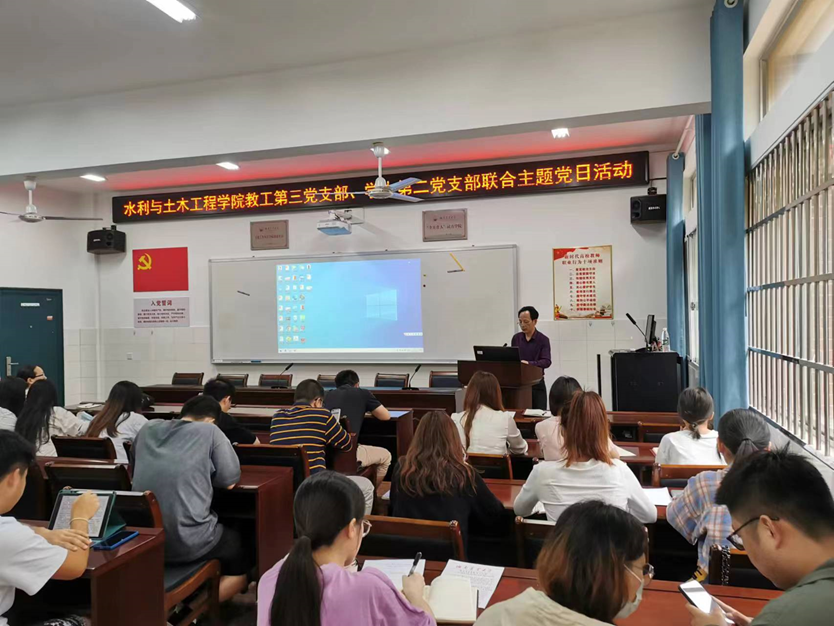 (通讯员 李明孝)为进一步深化“学四史三文化,正三观立四德”主题教育活动,进一步激发基层党组织活力,用实际行动迎接党的二十大胜利召开,2022年5月26日下午,水利与土木工程学院教工第三支部、学生第二党支部在8教南216联合举办“讲述党史故事,感悟初心使命”主题党日活动。