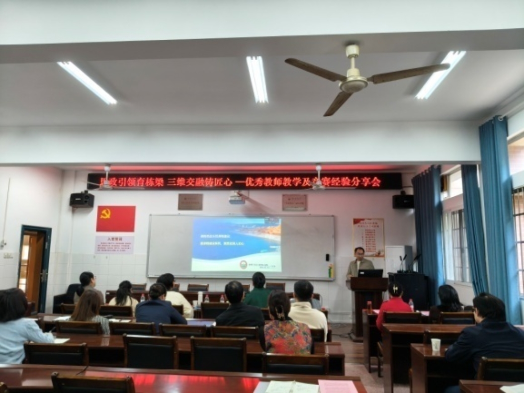 在经验分享环节,马克思主义学院汤燕妮副教授分享了“温故知新 笃行致远—浅谈思政课的‘赛’与‘教’”为主题的思政课教学改革的实践与思考。水利与土木工程学院张龙文博士围绕“协同筑基 责任铸魂——课程思政设计与实践”主题,交流了课程思政融入教学设计的策略与方法。汤峰副教授以“借课程建设契机,融思政育人初心”为题,系统介绍了省级课程思政示范课程的建设经验,为专业课教师开展课程思政提供了有益借鉴。