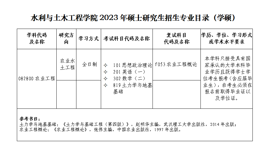 水利与土木工程学院2023年硕士研究生招生专业目录(专硕)