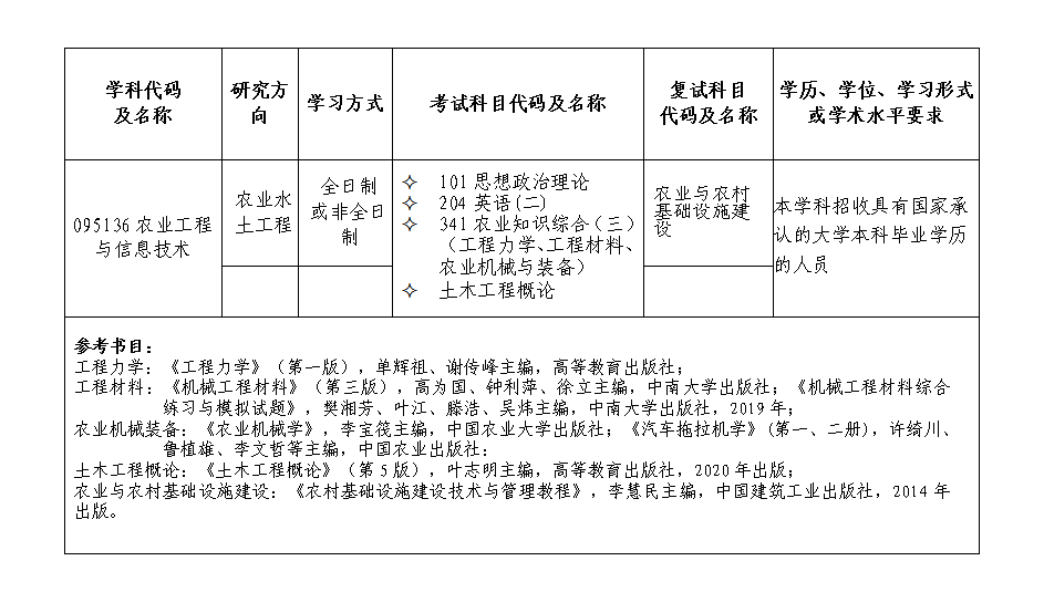 水利与土木工程学院2023年硕士研究生招生专业目录(专硕)