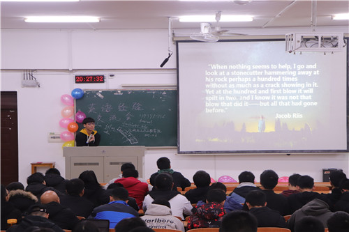 为培养同学们学习英语的兴趣,12月6日晚,我院于九教北101顺利举办了英语学习经验分享交流会。我院文明督导队队长李岩松出席交流会。本次交流会特邀朱紫欢与袁仕杰同学担任主讲人,学院部分学生参会。