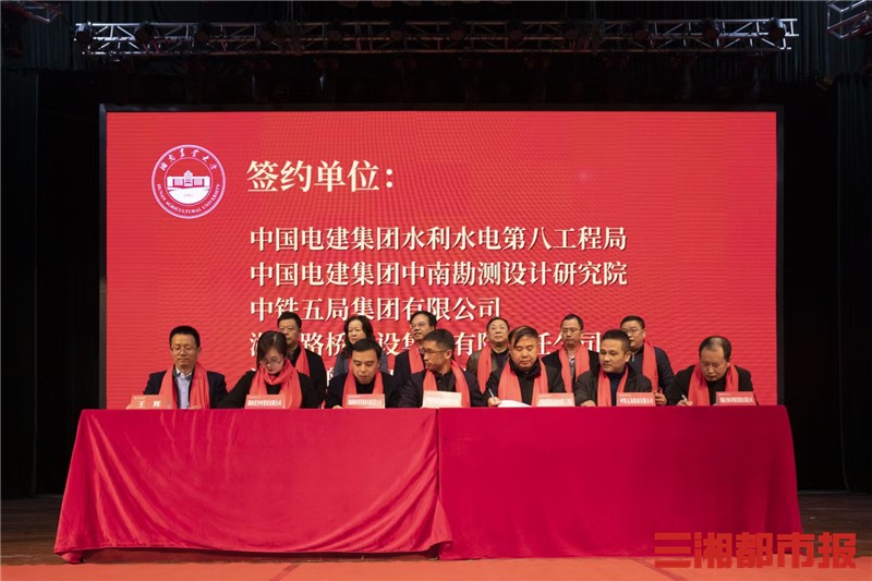 会上,学院与中国电建集团水利水电第八工程局、中国电建集团中南勘测设计研究院、中铁五局集团有限公司以及湖南路桥建设集团有限责任公司、深圳市水务技术服务有限公司、广东省水利水电第三工程局有限公司等11家企业签订了就业实习协议,为开创实习就业零距离打造良好平台。湖南农业大学党委书记陈弘,党委委员、纪委书记方逵,党委委员、副校长、校友总会常务副会长张立,党委委员、宣传部统战部部长刘启定等校领导和有关单位负责人见证了签约仪式。