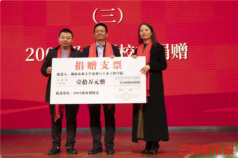 三湘都市报12月1日讯(通讯员 翟光辉 记者 杨斯涵 黄京) 11月29日,湖南农业大学校友总会水利与土木工程学院校友会分会成立大会捐赠仪式上,1999级水利校友为20年来每年都坚持长途跋涉在三峡工程、向家坝工程、白鹤滩工程等超级工程一线指导实习的该校水利工程专业创始人裴毅教授、工程管理和农业水土工程学科开拓者姚帮松教授颁发了学院首届教师教书育人成就奖,2002级水利校友为3位学生颁发了校友奖学金,2001级水利校友捐赠10万元人民币,新添一曲曲农大校友重教务学的旋律。