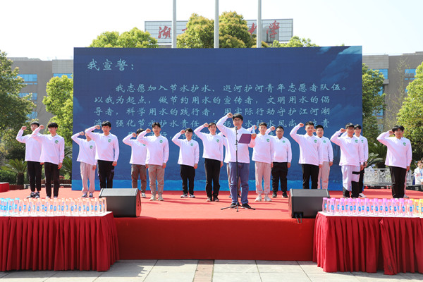 参与活动的500余名志愿者们共同举起右拳,庄严宣誓,以我为起点,从我做起,以实际行动团结带领更多的大学生投入到节水护水的志愿服务行列中。