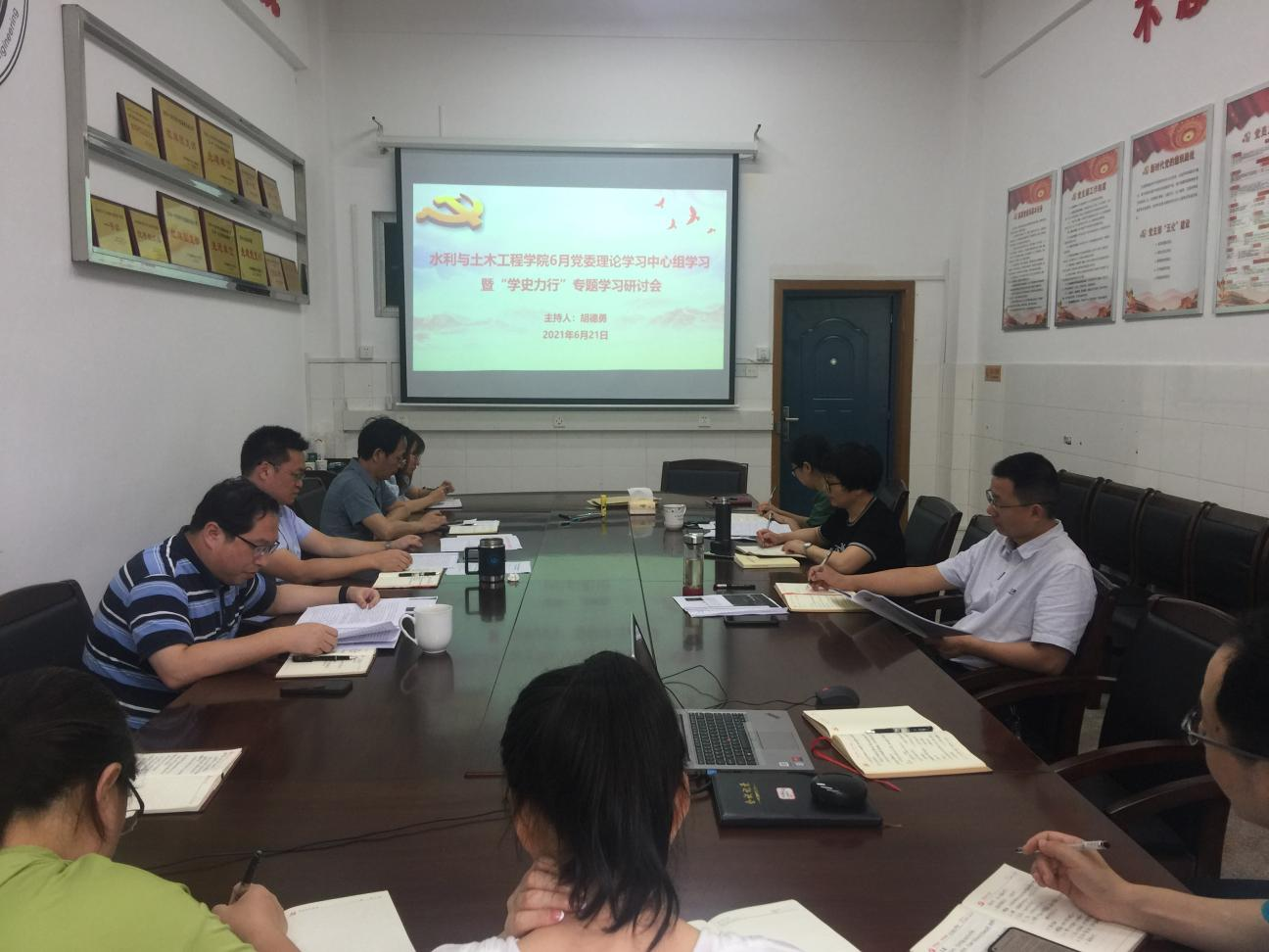 本网讯(通讯员 翟光辉)6月21日上午,水利与土木工程学院召开党委理论学习中心组会议,以读书班的形式进行“学史力行”和”清风传家“专题学习研讨。会议由学院党委书记胡德勇主持,学院党委理论学习中心组全体成员参加。