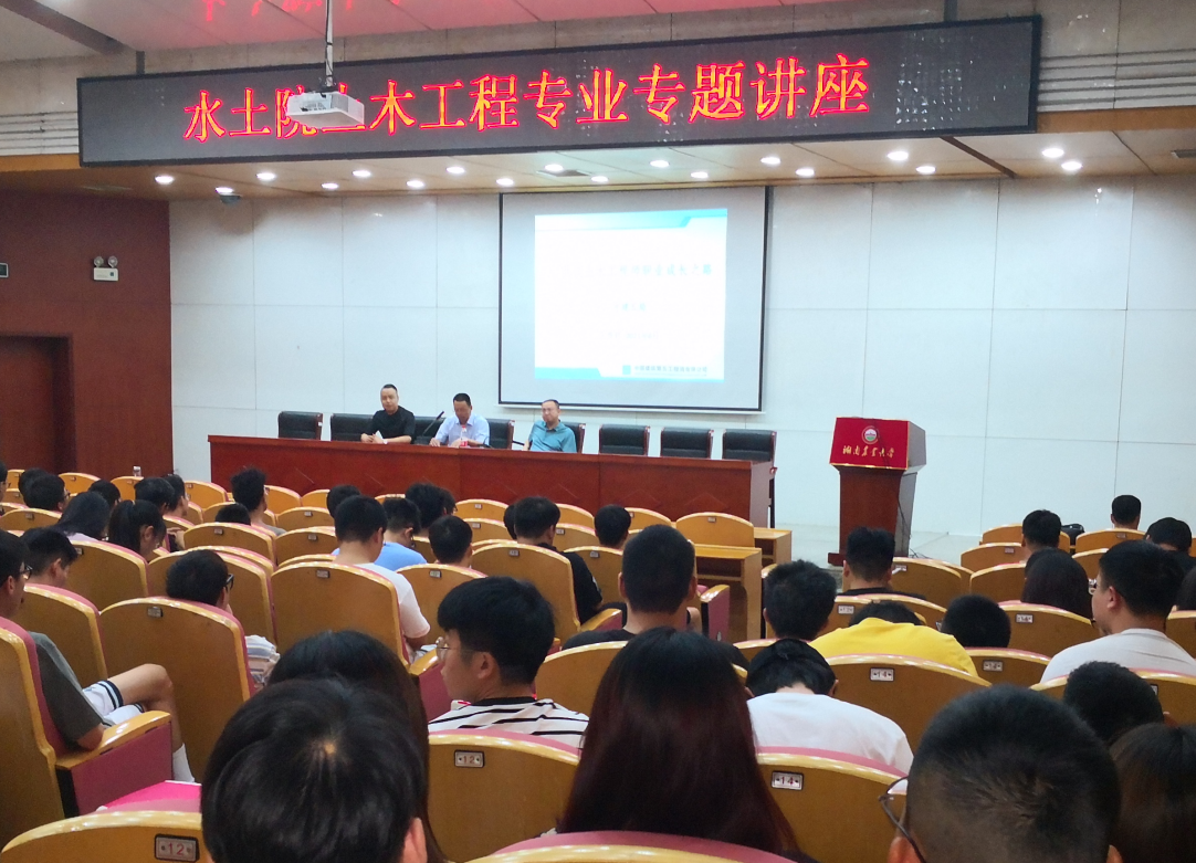 王贵君总经理以《共谈土木工程师职业成长之路》为题,从土木行业发展形势和自身职业成长得失分享等方面进行了风趣幽默的报告,让同学们对土木行业现状、前景有了更为全面的认识,启发了大家对职业规划的深刻思考。