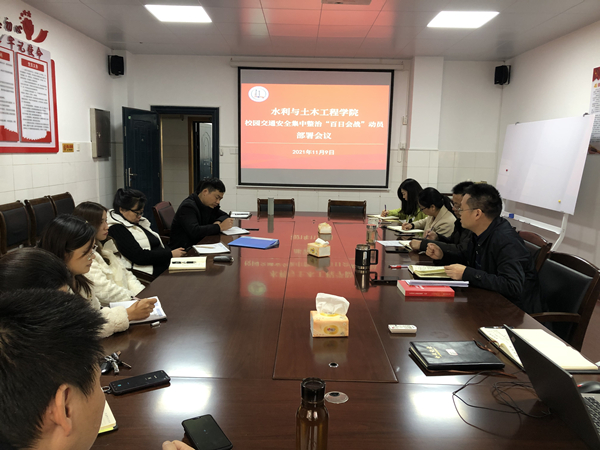 本网讯(通讯员 翟光辉)11月9日下午,水利与土木工程学院在8教南212会议室召开校园交通安全集中整治”百日会战“动员部署专题会议。会议由学院院长王辉主持,学院领导班子成员、各系(中心)主任和全体管理人员参加。