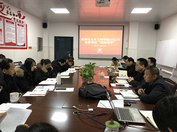 本网讯(通讯员 刘峻峰 翟光辉)2022年1月7日上午,水利与土木工程学院召开2021年度党支部书记“双述双评”会议。会议由学院专职组织员刘峻峰主持,学院党委班子成员、各党支部书记和支委参加。