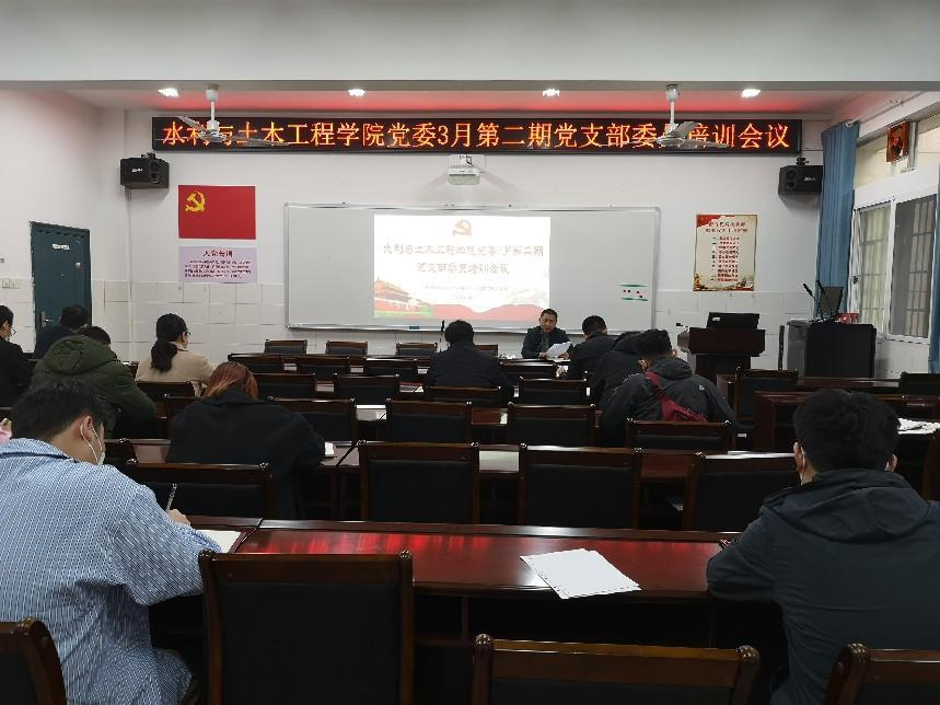 本网讯(水利与土木工程学院 喻璐颖)3月31日下午,水利与土木工程学院在八教南216会议室召开2022年第二期党支部委员业务培训会议。会议由学院专职组织员刘峻峰主持,学院党委书记胡德勇、党委副书记丁凯和各支部委员参加。