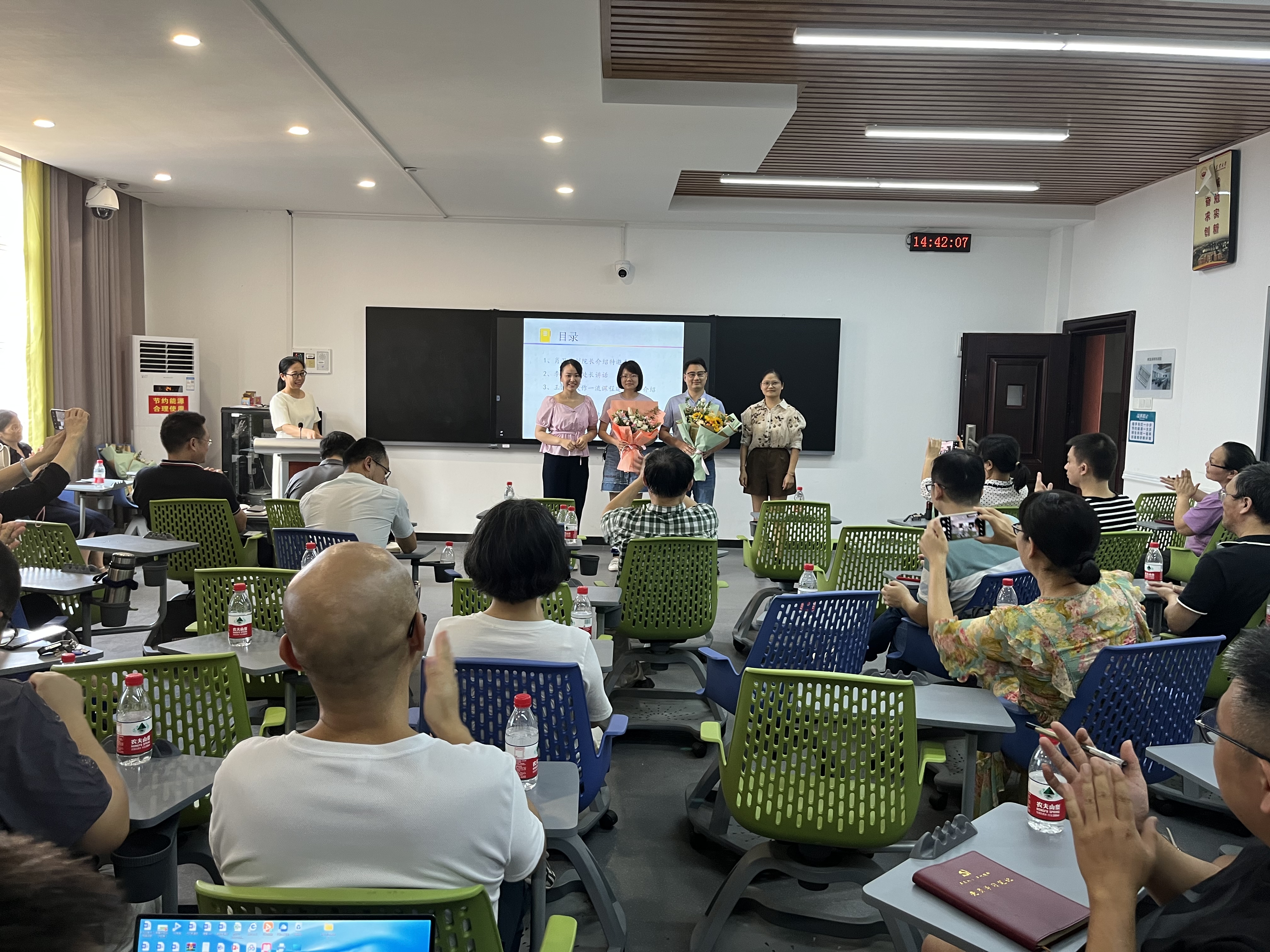 本网讯(通讯员 肖欢)在第38个教师节来临之际,为了全面提高人才培养质量,破解学院一流本科课程建设困境,9月8日下午,学院在十教南622智慧教室召开“一流课程建设”交流研讨会。会议由肖卫华副院长主持,特邀教育学院王浪教授和教务处李方一副处长出席,学院全体专任教师参加。