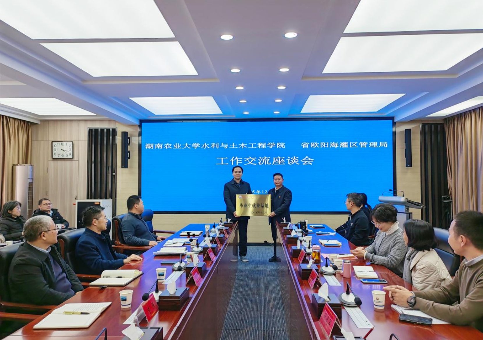 会上,学院党委副书记田建湘为欧阳海灌区管理局授予“毕业生就业基地”牌匾,正式建立就业合作平台,为毕业生搭建实践与就业桥梁。